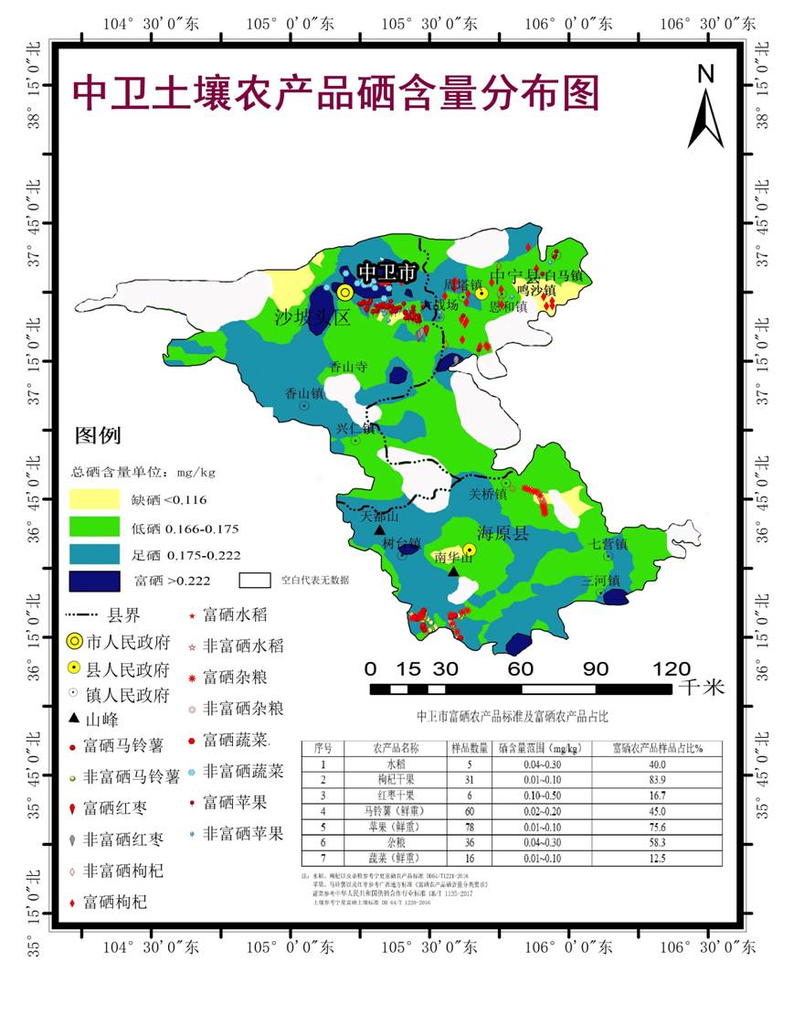 2018年初,中衛市開展了全市區域內土壤硒元素含量普查工作,通過對全市土壤及部分農產品進行取樣、檢測(1:250000),完成繪制全市土壤硒元素分布圖,徹底摸清了全市土壤硒元素含量情況。