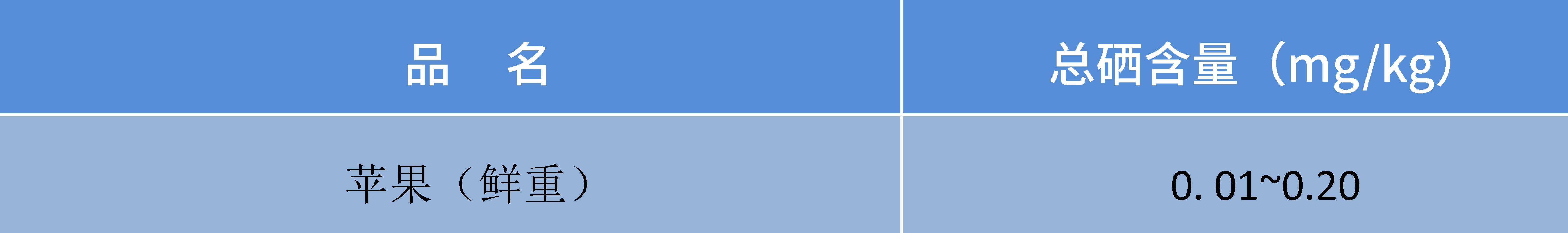 為了解決終端農副產品品質參差不齊的現況,中衛市參考地方及行業富硒領域相關標準專門制定了《富硒硒砂瓜》、《富硒蘋果》企業標準,其規定富硒硒砂瓜鮮重總硒含量為≥0.01 mg/kg、富硒蘋果鮮重總硒含量為0.01-0.20 mg/kg,具體如表1、2所示: