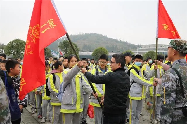 開營儀式上,宜春八中的領導發表了熱情洋溢的講話,希望同學們在活動中認真參與,聽從教官和工作人員的指揮,注意活動安全;總教官對研學實踐活動項目做了詳細的介紹,并指導大家進行了熱身運動。隨后,以班級為單位組隊開展活動,并授隊旗。