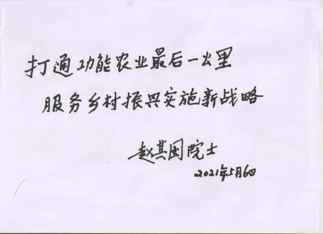 2021年5月6日,土壤地理學(xué)家、中國科學(xué)院院士趙其國對臨城縣職教中心利用自身技術(shù)優(yōu)勢服務(wù)三農(nóng)、助力功能農(nóng)業(yè)發(fā)展給予肯定,并為該校寫下了“打通功能農(nóng)業(yè)最后一公里,服務(wù)鄉(xiāng)村振興實施新戰(zhàn)略”的題詞。