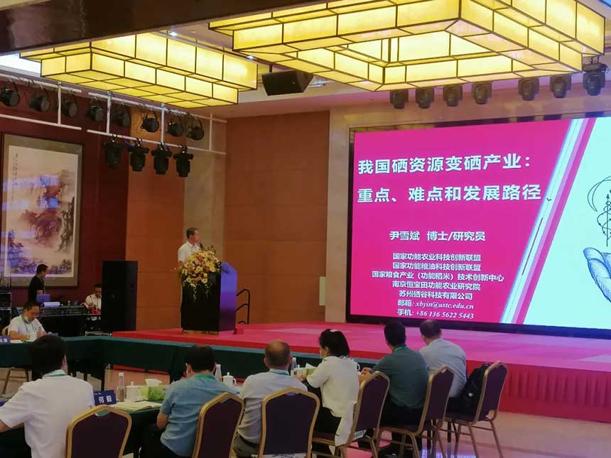 國際硒研究學會副主席、國家功能農業科技創新聯盟理事長尹雪斌教授,武漢輕工大學黨委副書記程水源教授,國家食物與營養咨詢委員會副秘書長、中國農業科學院后勤服務中心黨委書記孫君茂,農業農村部農產品加工業專家委員會專家委員、光華博思特營銷咨詢機構總裁韓志輝教授分別在會上作報告,贛州市、中衛市、江津區等九個全國硒區領導及專家代表王治倫教授隨后發言,與會嘉賓圍繞功能農業、科學補硒、硒與健康、硒產業轉型發展等重點,展開深入研討,共同為促進功能農業暨硒產業健康發展建言獻策。