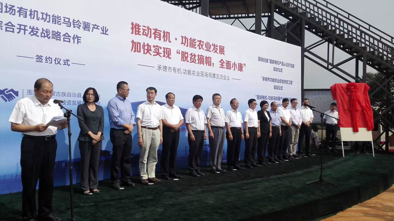 國家認監(jiān)委為圍場授“國家有機產(chǎn)品認證示范創(chuàng)建縣”牌匾。同時,“蘇州富硒功能農(nóng)業(yè)院士工作站·圍場研究基地”揭牌。與會同志一同觀摩了承德市功能農(nóng)業(yè)扶貧示范區(qū)暨圍場有機富硒功能馬鈴薯示范基地。