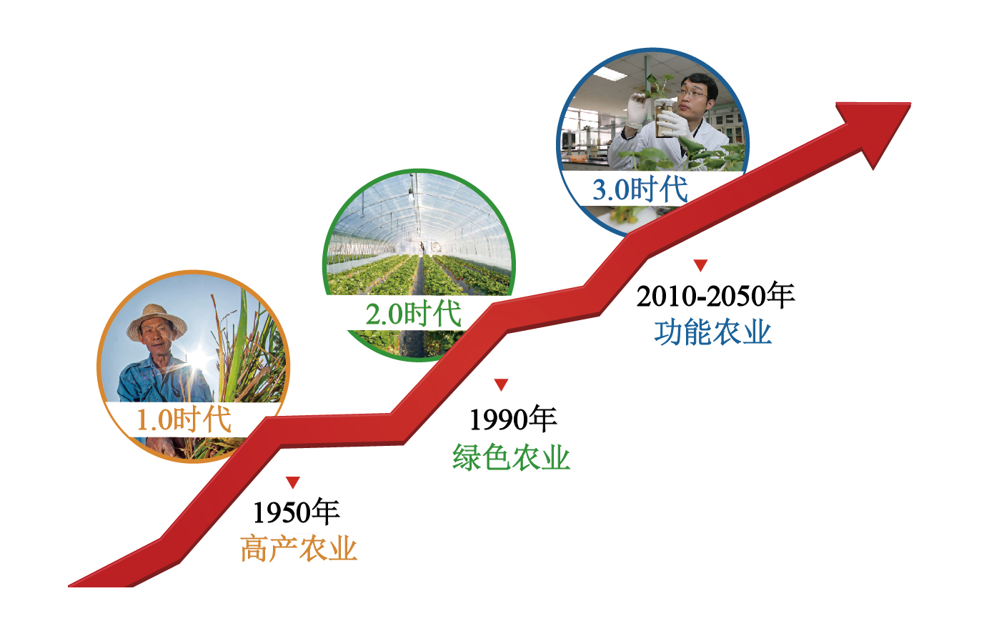 功能農(nóng)業(yè)是農(nóng)業(yè)發(fā)展的新方向,它是繼高產(chǎn)農(nóng)業(yè)、綠色農(nóng)業(yè)之后的第三個(gè)發(fā)展階段。功能農(nóng)業(yè)作為農(nóng)業(yè)發(fā)展的第三個(gè)階段,側(cè)重于增加農(nóng)產(chǎn)品的健康內(nèi)涵(圖2)。通過現(xiàn)代生物科技和農(nóng)藝措施,標(biāo)準(zhǔn)化調(diào)整優(yōu)化農(nóng)產(chǎn)品的營養(yǎng)成分,滿足人們個(gè)性化的需求。這一農(nóng)業(yè)形態(tài)理想的目標(biāo)是“缺啥補(bǔ)啥”,“啥多調(diào)啥”。