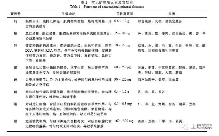 礦物質(zhì)對人體健康起重要作用,多種礦物質(zhì)復(fù)合,效果更加明顯。功能農(nóng)業(yè)的最終農(nóng)產(chǎn)品,就是使其定量富含某種或某幾種礦物質(zhì)。首先要解決礦物質(zhì)形態(tài)技術(shù)及吸收預(yù)測模型這一基礎(chǔ)性科學(xué)問題。