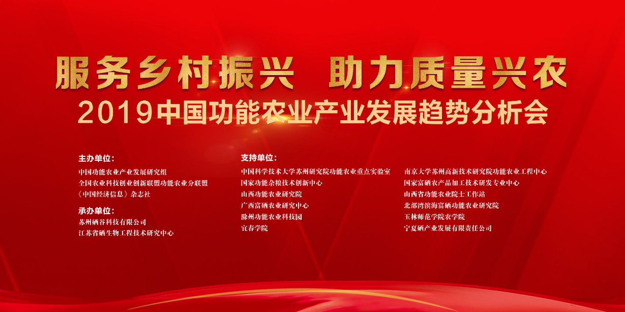 1月20日,一場功能農(nóng)業(yè)的盛會——“2019中國功能農(nóng)業(yè)產(chǎn)業(yè)發(fā)展趨勢分析會”在蘇州萬怡酒店隆重舉行,來自全國十余省市的200多位代表齊聚美麗的蘇州,共同回眸過去,展望未來,為功能農(nóng)業(yè)發(fā)展添磚加瓦。
